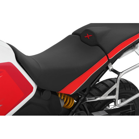 Pri predstavení Ducati DesertX sme pre vás uviedli na trh zodpovedajúce sedadlá vodiča a spolujazdca AKTIVKOMFORT v dizajne X: sedadlá Wunderlich, ktoré dokonale kombinujú jedinečné vlastnosti našich sedadiel AKTIVKOMFORT a farebné usporiadanie sedadiel DesertX. Ako poctu modelu DesertX sme do obrysu podpery sedadla predného spolujazdca vyšívali výrazné červené X.
