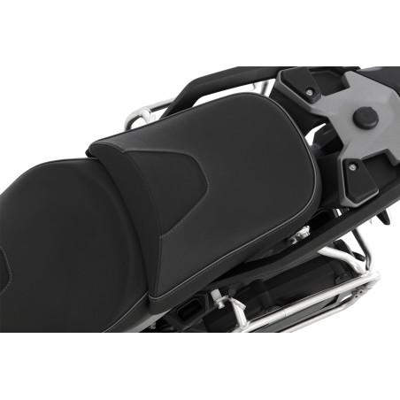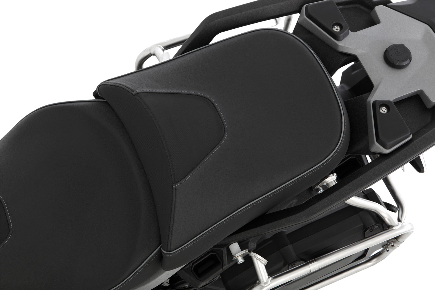 Naše sedadlo spolujazdca, jedinečné na trhu, ponúka vysokú úroveň súčasných kvalitných sedadiel vodiča z hľadiska ergonómie, vlastností čalúnenia a predovšetkým rozmerov. Strih poťahu, prepracované švy a ručná práca našich sedlárov zaisťujú vzhľad, ktorý sa – napriek veľkorysému plusu o 70 milimetrov v šírke sedadla v porovnaní so sériou – úžasne nenápadne integruje do dizajnu BMW R 1300 GS. Zároveň sa znižuje tlak pri sedení vďaka výrazne väčšej ploche, čo vedie k citeľne väčšiemu komfortu pre zadoček.