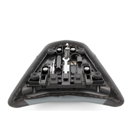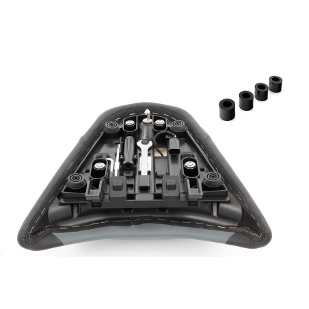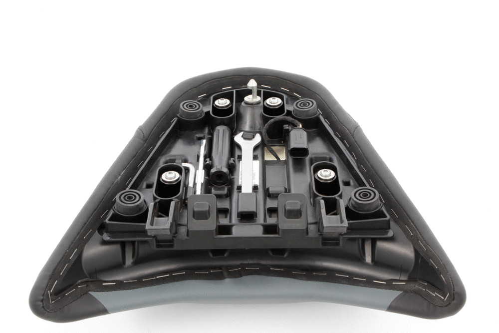 Pri štandardnom sedadle spolujazdca na BMW R 1300 GS, keď je nainštalovaný, je možné sedadlový prvok nastaviť do prednej alebo zadnej polohy pomocou pružinového mechanizmu. Keďže mechanizmus vyžaduje z technických dôvodov určitú vôľu, sedadlo spolujazdca sedí dosť voľne, čo môže v spolujazdcovi vyvolať nebezpečný pocit nestability počas jazdy. S našou upevňovacou súpravou je sedadlo trvalo upevnené v preferovanej polohe bez vôle a ponúka pevné uchytenie, a tým bezpečnú jazdu. Upevňovacia súprava pozostáva zo štyroch pevne dimenzovaných plastových puzdier, ktoré nahrádzajú štandardné pružiny.