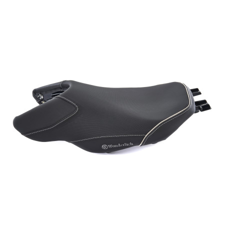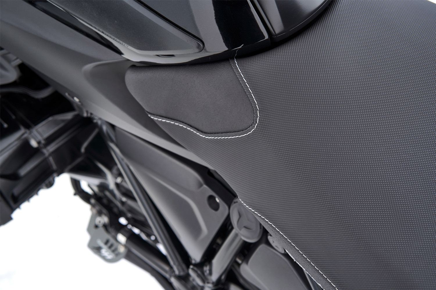 Naše sedadlá vyrábame s charakteristickým, ergonomickým 3D obrysom, ktorý umožňuje jazdcovi splynúť s motocyklom BMW. Tvar a sklon náročne vypracovaného jadra lavičky podporuje ergonomicky výhodnú, prirodzenú polohu panvy. Takto integrovaný, je ľahké jazdiť uvoľnene, a teda aktívne. A uvoľnené sedenie nepochybne zvyšuje pasívnu bezpečnosť. S našimi sedadlami vodiča a spolujazdca ThermoPro je teplota povrchu sedadla uprostred leta na páliacom slnku až o 25 °C nižšia v porovnaní s bežným poťahovým materiálom. V našom sortimente máme zodpovedajúce sedadlo spolujazdca.