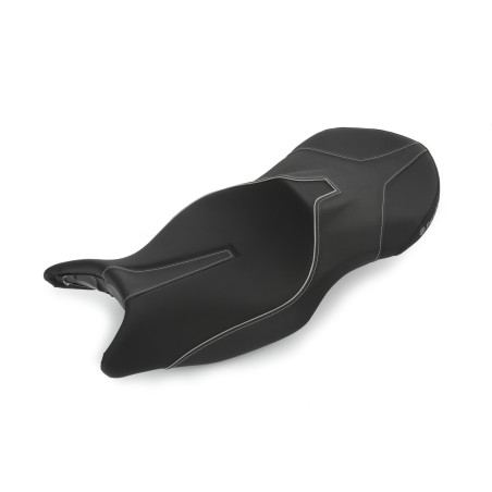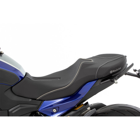 Naša sedačka, jedinečná na trhu, ponúka vysokú úroveň súčasných, kvalitných sedadiel vodiča z hľadiska ergonómie, vlastností čalúnenia a predovšetkým rozmerov. Strih poťahu, prepracované švy a ručná práca našich sedlárov zaisťujú vzhľad, ktorý – napriek veľkorysému zväčšeniu šírky sedadla o 40 mm a dĺžky o 10 mm v porovnaní so sériou – je úžasne diskrétne integrovaný do dizajnu modelov F 900 R a XR. Zároveň sa znižuje tlak pri sedení vďaka výrazne väčšej ploche, čo vedie k citeľne väčšiemu komfortu pre zadoček.