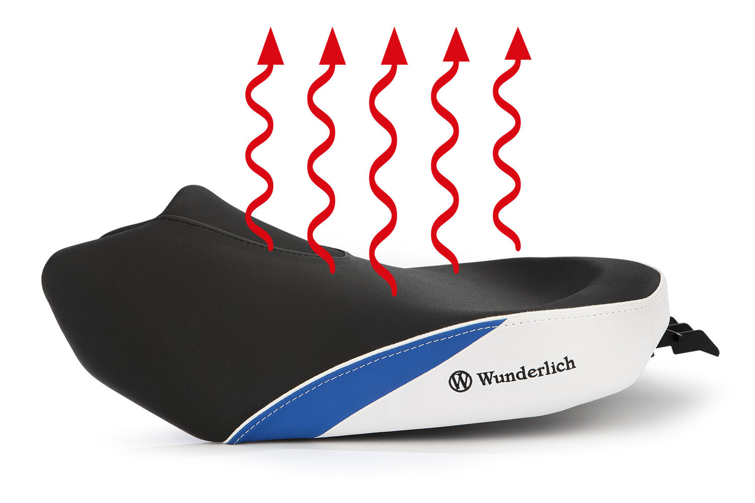Premyslená konštrukcia spoľahlivo zabraňuje „prehýbaniu“ čalúnenia a tlak sedadla je rovnomerne rozložený na väčšiu plochu, čo vedie k citeľne nižšiemu mernému tlakovému zaťaženiu spodnej časti. Príjemné! Ergonomický tvar špeciálnej peny tiež zmierňuje tlak na kostrč citlivú na tlak. Ponúkajú dokonalú priľnavosť a aktívnu, bezpečnú kontrolu pri jazde vo vysokých rýchlostiach, najmä pri brzdení: Kto to nezažil, keď pri kotvení pilot náhle tlačí zozadu a vy sa zrazu musíte podopierať a v potenciálne nebezpečnej situácii aj riadiť. Vďaka špeciálne vyvinutému podpornému obrysu Wunderlich sú tieto šokové momenty pri brzdení minulosťou. Inovatívny, ergonomický 3D obrys tiež zaisťuje, že tlakové body na vnútornej strane stehien pri státí na semaforoch sú minulosťou.
