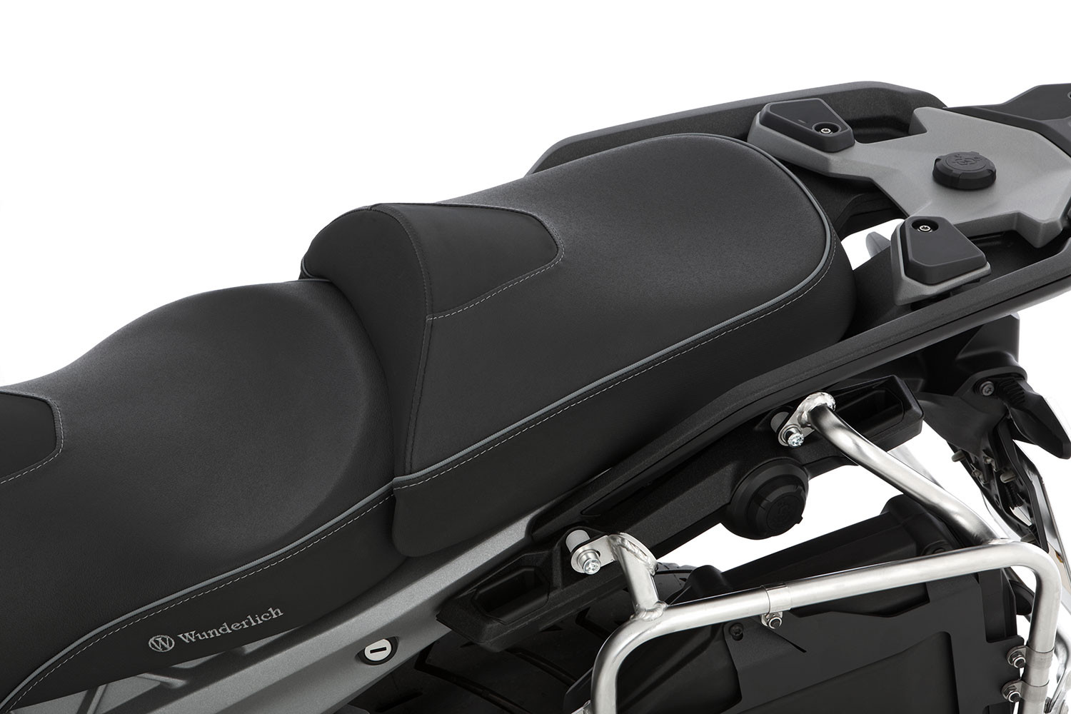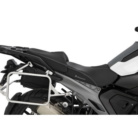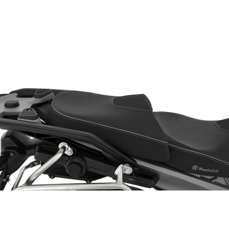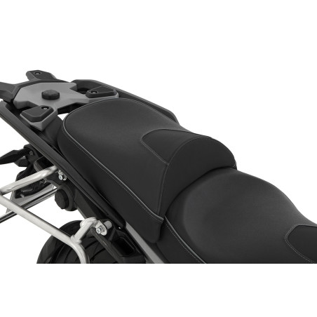 Naše sedadlo spolujazdca, jedinečné na trhu, ponúka vysokú úroveň súčasných kvalitných sedadiel vodiča z hľadiska ergonómie, vlastností čalúnenia a predovšetkým rozmerov. Strih poťahu, prepracované švy a ručná práca našich sedlárov zaisťujú vzhľad, ktorý sa – napriek veľkorysému plusu o 70 milimetrov v šírke sedadla v porovnaní so sériou – úžasne nenápadne integruje do dizajnu BMW R 1300 GS. Zároveň sa znižuje tlak pri sedení vďaka výrazne väčšej ploche, čo vedie k citeľne väčšiemu komfortu pre zadoček.