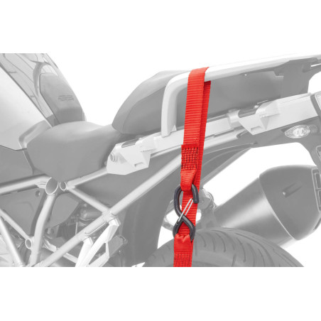 Tieto 200 cm dlhé polyesterové popruhy sú vybavené galvanizovaným, poplastovaným háčikom a umožňujú bezpečné a spoľahlivé upevnenie pri preprave motocykla. Toto vysokokvalitné riešenie, vybavené prémiovými vačkovými prackami Acebikes a integrovanými všitými slučkami, spĺňa všetky prepravné požiadavky. Integrované slučky umožňujú jednoduché pripevnenie k akémukoľvek upevňovaciemu bodu na motocykli a tiež zabraňujú tomu, aby sa mäkčené háky dotýkali karosérie. Viacúčelové riešenie pre stredne ťažké až ťažké motocykle alebo skútre, ktoré sa dodáva s pohodlnou taškou na prenášanie a suchými zipsami na usporiadanie zvyškov popruhov.