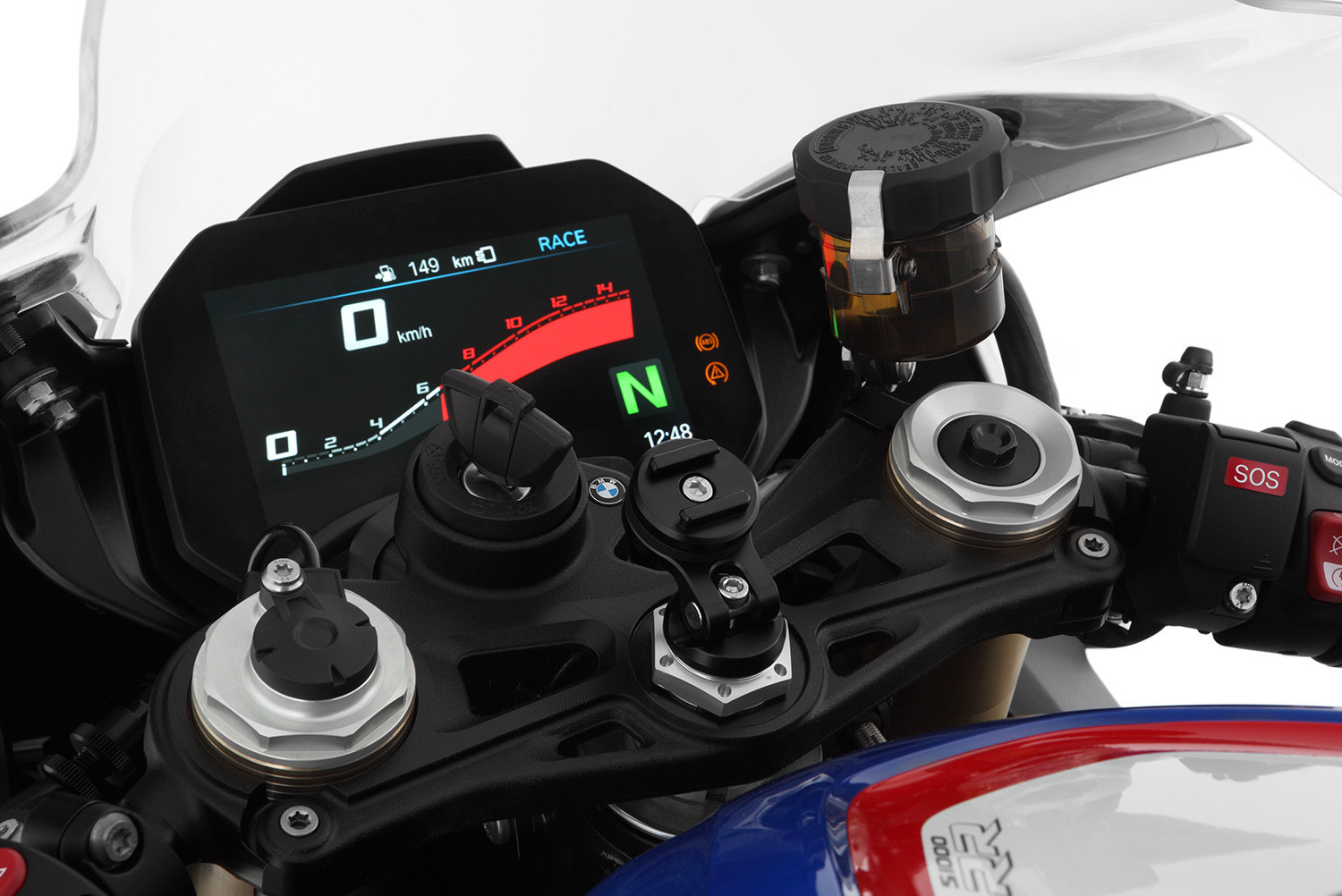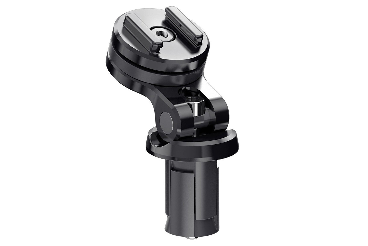 Jednoducho zaskrutkujte tento štíhly hliníkový držiak do hlavy riadenia vášho motocykla a môžete ľahko namontovať svoj smartphone pomocou SP Connect PHONE CASE (alebo UNIVERSAL INTERFACE) tak, že ho umiestnite na držiak a otočíte o 90 ° v smere hodinových ručičiek.
