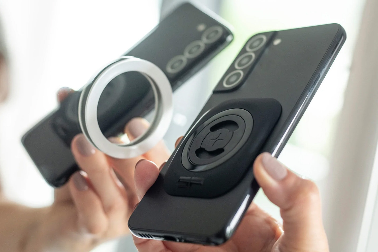Tieto okrúhle držiaky mobilných telefónov od SP Connect TM spoľahlivo priľnú na akýkoľvek povrch a presvedčia skvelou povrchovou úpravou mäkkou na dotyk. Jednoducho prilepte svoj magnetický priľnavý držiak na miesto podľa vášho výberu a rýchlo a bezpečne pripevnite puzdro na telefón SPC+ k magnetickému držiaku.