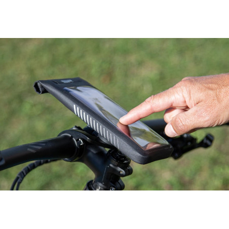 Vďaka univerzálnemu ochrannému puzdru SP Connect je možné takmer akýkoľvek smartfón pripojiť k akémukoľvek držiaku SP Connect a bezpečne tak pripevniť smartfón k motocyklom, bicyklom, autám atď. pomocou patentovaného mechanizmu otočného zámku. Jednoducho ho zasuňte do krytu, otvor zrolujte a zaistite povrchom na suchý zips. To znamená, že váš smartfón zostáva chránený pred dažďom, blatom a prachom a zároveň umožňuje plné využitie dotykovej obrazovky.