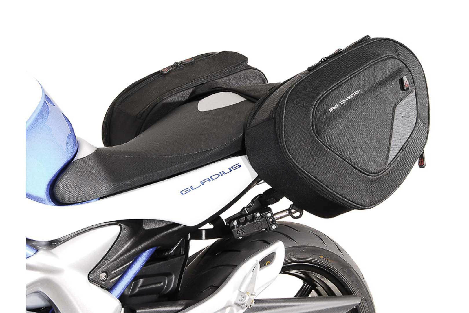 BLAZE H sedlové pro Suzuki SFV650 Gladius (09-16)BLAZE a nabízí inovativní způsob, jak připojit měkké brašny na sportovní motocykly. Systém je vybaven montážní zbraní, které rychle připojit k motocyklu a pak vklouzl do kanálů, které jsou umístěny na zadní straně každého zavazadla. Tyto podporují zbraní proti pohybu do stran, stabilizovat tašky a zabránit potenciální kontakt s zadní pneumatiky nebo vyčerpat. Montáž zbraní rychle odpojit zachovat vzhled motocyklu, když tašky jsou odstraněny.Pro sportovní motocykly sedlové BLAZE umožňuje rychle turné konverzeOdnímatelné rameno brání kontaktu se zadní pneumatikyJednorázovou instalaci cyklista držáky pro podpěrné ramenoŠiroký popruh Velcro® opírající se připojí přes sedadlo, propojuje dvě tašky a poskytuje další podporu, stabilitu a distribuuje Hmotnost pytleRozbalování zip, který přidává větší objemHlavní prostor s horním plněním funkceVnější kapsa na zipReflexní lišta zlepšuje viditelnostPevné držadloLehký a účinný aerodynamický design14-21 l / 14 x 30 x 44 cm / 1200 g / sáčekMateriál: odolný materiál 1680D balistický nylonBarva: černáZahrnuty: 2 BLAZE H brašny2 vodotěsné vnitřní sáčky2 cyklista držáky včetně ramena pro Suzuki SFV650 GladiusMontážní materiálMontážní návod Poznámka:BLAZE je navržen pro motocykly v jejich původním stavu. Kompatibilita s následnou trhu příslušenství (zejména výfuky) mohou t zaručit.