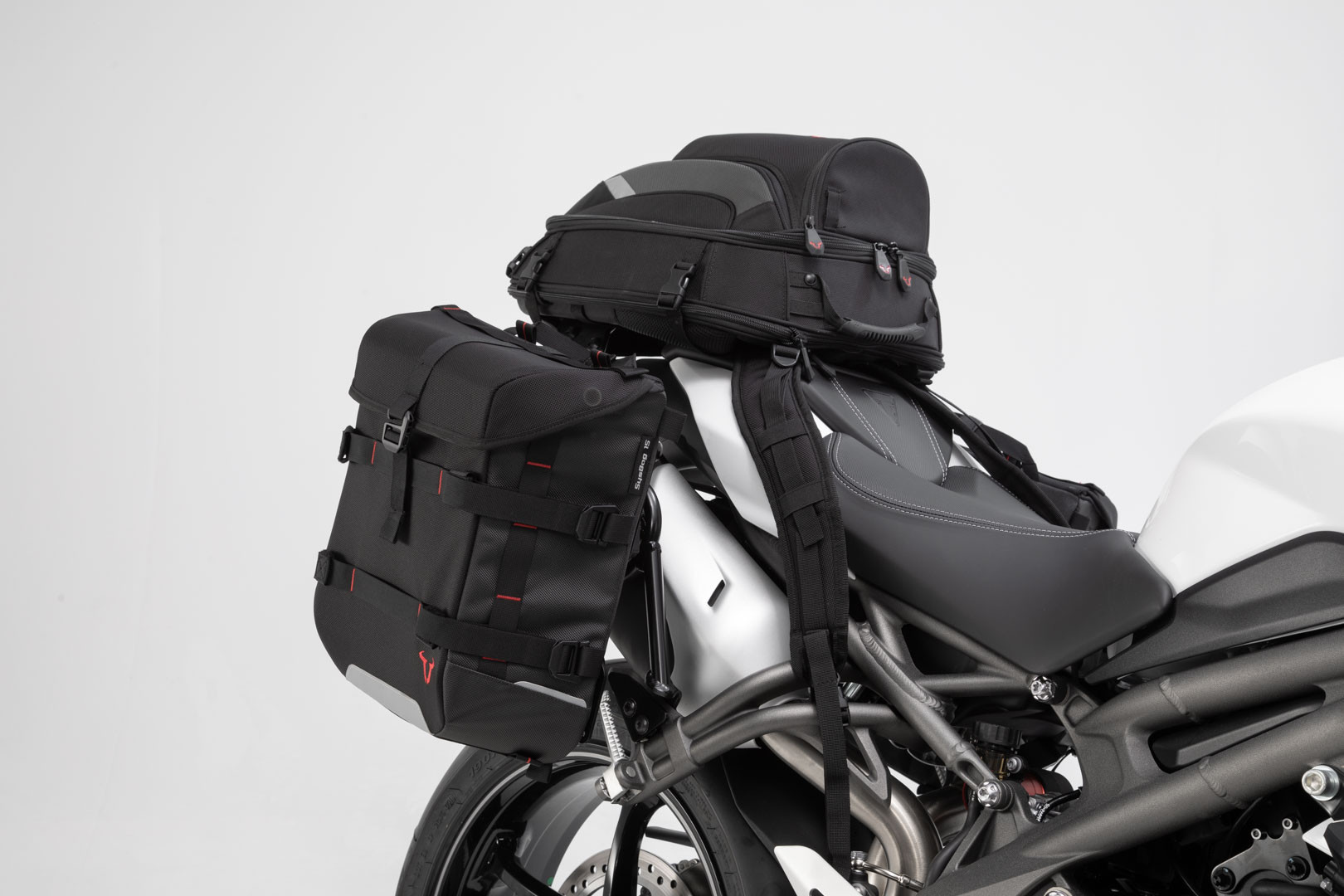 SysBag 15/15 bag systém včetně SLC boční nosičeSložení tohoto systému je optimálně navržena pro geometrii zadní Triumph Speed Triple 1050 (18-). To zahrnuje SysBag 15 bag pro levou stranu a SysBag 15 bag pro pravou stranu. Toto kompletní řešení můžete vybavit kolo pro příští dlouhé turné v mrknutí oka. Jakmile jsou namontovány boční nosiče SLC, SysBag tašky lze připojit jediným kliknutím pomocí rychloupínací systém Zapínání adaptéru desek. Přesný, cyklista vývoj SLC boční nosiče umožňuje jednoduché a snadné připojení k původní úchyty na vozidle. SW-MOTECH máme motocyklisté v práci v oblasti vývoje produktů, kteří vědí, co potřebujete pro každodenní jízdu. Tedy naše SysBags sjednotit lehký s odolnosti, všestrannosti a dobře promyšlené detaily. Všechny SysBags jsou vyrobeny z robustní balistický nylon, testován armádou, rolovací uzávěr a překrývající se víko. Dvojité PU podšívka poskytuje další ochranu, jakož i odnímatelná, nepromokavá vnitřního vaku, který je připojen pomocí Velcro® na rolovací uzávěr. Reflexní detaily zajistí větší bezpečnost v silniční dopravě a po prohlídce, SysBags mohou být prováděny pohodlně s integrovaným madlem nebo přiloženého ramenního popruhu.Rysy SysBag 15/15 sáčkůRobustní a univerzální zavazadlový pro všemožná dobrodružstvíPříloha s pouze jedním klepnutím na straně dopravce SLC díky přiloženým adaptérem desky s rychlouzávěrem.Zpět to je jemné na laku s protiskluzným povrchemZesílené prvky zabránit vlály ve vysokých rychlostechPřekrývající se obal s prostorem pro pletivo uvnitřVodotěsný: Snímatelné, vodotěsná vnitřní taška lze připevnit i na rolovací uzávěrIntegrované držadlo, ramenní popruh je součástí dodávkyPři použití sáčku bez adaptérů, gumovou zátkou na očka chrání lakReflexní prvky pro větší bezpečnost v provozuFunkce prvky barevněVyrobeno z robustní balistický nylon, s dvojí PU vnitřní vrstvou pro lepší ochranu proti nepřízni počasíPodrobnosti o SysBag 15Materiál: 1680D balistický Nylon / 420D RipstopBarva: černá / antracitVáha: 0,9 kgVelikost: 32,5 x 15,5 x 36,5 cmObjem: 15 lVlastnosti desek adaptér pro SysBag 15/15Jednoduchý montážní deska adaptéru na smyčky na tašky se čtyřmi šroubyPouze jeden pohyb: rychlouzávěrem přírubou zaručuje bezpečné držení SysBag na straně dopravce SLCPohodlné otevírání rychloupínací zapínání přes stahovací šňůrkuPřed prvním použitím rychloupínací zapínání je namontován na desku adaptéru a to do vakuFunkce boční nosiče SLCBoční nosič SLC, přizpůsobené pro Triumph Speed Triple 1050 (18-), dokonale zapadá do vzhleduVyrobeno z stabilní nerezové potrubí, SLC boční nosič záruky bezpečné drží tašky SysBag 15/15 s adaptační deskyKompatibilní také s URBAN ABS boční případů, legenda Gear postranní tašky LC1/LC2 nebo univerzální boční regálSada adaptéru je součástí dodávky.Poznámka:Volitelně můžete také jednoduše svažte ho do zadní části motocyklu s popruhy uzavřené smyčky, integrovaný popruh s SysBag háky a popruhy umožňují kombinaci s SysBag 10 a SysBag 15.Stále máte otázky ohledně shromáždění? Naleznete v pokynech pro další podrobnosti.Součástí dodávky2 SLC boční nosič s sada adaptéru1 sáček SysBag 15 s adaptérem (vlevo)1 sáček SysBag 15 s adaptérem (vpravo)2 x 4 smyčky pásky s SysBag háky2 ramenní popruhy2 vodotěsné vnitřní sáčky2 x 2 gumové zátky pro poutka na zadní straně vaku2 x 2 SPZ popruhy2 fólie na ochranu barvyMontážní materiálMontážní návod