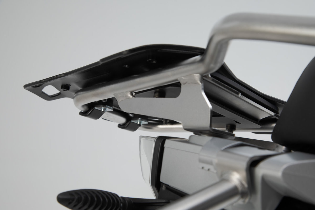 ADVENTURE-RACK Rack Tento nosič je určen pouze pro: BMW R 1200 GS Adventure BMW R 1250 GS Adventure není vhodný pro modely R1200 GS/R 1250 GS !!!!! SW-MOTECH vyrábí tento všestranný ADVENTURE-RACK vhodný pro BMW R 1250 GS Adventure. Připraven na velké dobrodružství: Náš ADVENTURE-RACK se osvědčuje svou extrémní odolností a funkčně orientovaným tvarem. Více než 15 let zkušeností s výrobou regálů v kombinaci se zpětnou vazbou od zákazníků a testovacích jezdců šlo do vývoje tohoto hliníkového stojanu Tloušťka materiálu, hmotnost a geometrie byly optimalizovány pro náročné výlety a použití v terénu. Nástavce specifické pro kolo zaručují nejlepší montáž a snadnou montáž na originální upevňovací body. ADVENTURE-RACK, speciálně vyvinutý pro dálkové enduros, velké pouliční a sportovní cestovní stroje, nabízí velkou kontaktní plochu. Četné, velké upevňovací oči poskytují bezpečné držení ocasních vaků. Funkční otvory vyžadují sady adaptérů pro uchycení horních kufrů SW-MOTECH, Givi, Krauser a Shad nebo SysBags. Stojan byl testován v náročných podmínkách v laboratoři i v terénu. Certifikovaný ústav také potvrdil jeho robustnost. ADVENTURE-RACK pojme vaše zavazadla až na konec světa nebo kamkoli chcete. Extrémně robustní nosič pro dlouhé výlety a jízdy v terénu Exkluzivní výrobní procesy a optimalizovaný tvar propůjčují ADVENTURE-RACKu extra dávku stability Jeho extrémní odolnost při vibracích, nárazech a vysoké hmotnosti byla testována v laboratoři a v terénu v nejnáročnějších podmínkách Více funkčních otvorů: pro horní kufry TRAX. SysBag15/30 s deskou adaptéru jsou k dispozici samostatně s příslušnou sadou adaptéru K dispozici jsou také sady adaptérů pro připevnění horních pouzder jiných výrobců (Givi Monokey a Monolock, Krauser, Shad I und II) Snadné upevnění zavazadel na početná velká upevňovací oka, možnost navlékání 25 mm upevňovacích prvků Zvláště velká kontaktní plocha (Šířka: 32,9 cm vpředu, 22,5 cm vzadu, Délka: 30,3 cm) Snadná instalace na originální upevňovací body s upevňovacími prvky specifickými pro kolo Účinná ochrana proti korozi z černého práškového lakování Vyrobeno z lehké, ale robustní hliníkové slitiny o tloušťce 4 mm Zahrnuto v dodávce 1 x ADVENTURE-RACK rack Montážní návod Montážní materiál Podrobnosti Materiál: Hliník Pevnost materiálu: 0,40 cm / 0,16 in Povrch: práškově lakovaný Barva: černá Poznámka Originální nosič zavazadel BMW není nutné demontovat!