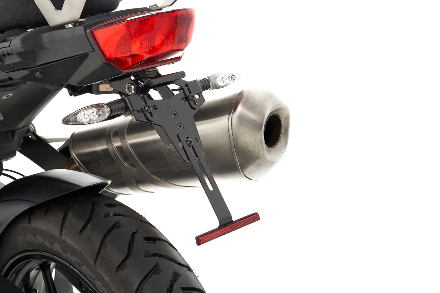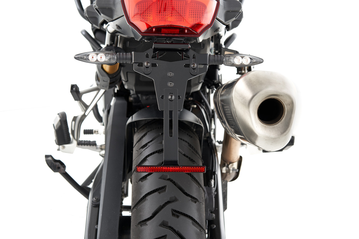 Spodná, presne padnúca a diskrétna obloženie úhľadne uzatvára oblasť pod sedadlom, na ktorej je namontovaný originálny chvost. Je vyrobený z hliníka a je eloxovaný na čierno. Okrem precíznej povrchovej úpravy slúži na zamedzenie vniknutia vody, sprejov a nečistôt. Slúži tiež ako základ pre náš tenký držiak ŠPZ, tiež vyrobený z čierneho eloxovaného hliníka. Má diskrétne LED osvetlenie ŠPZ a na spodnom konci sa zmestí úzky, ale široký držiak ŠPZ.