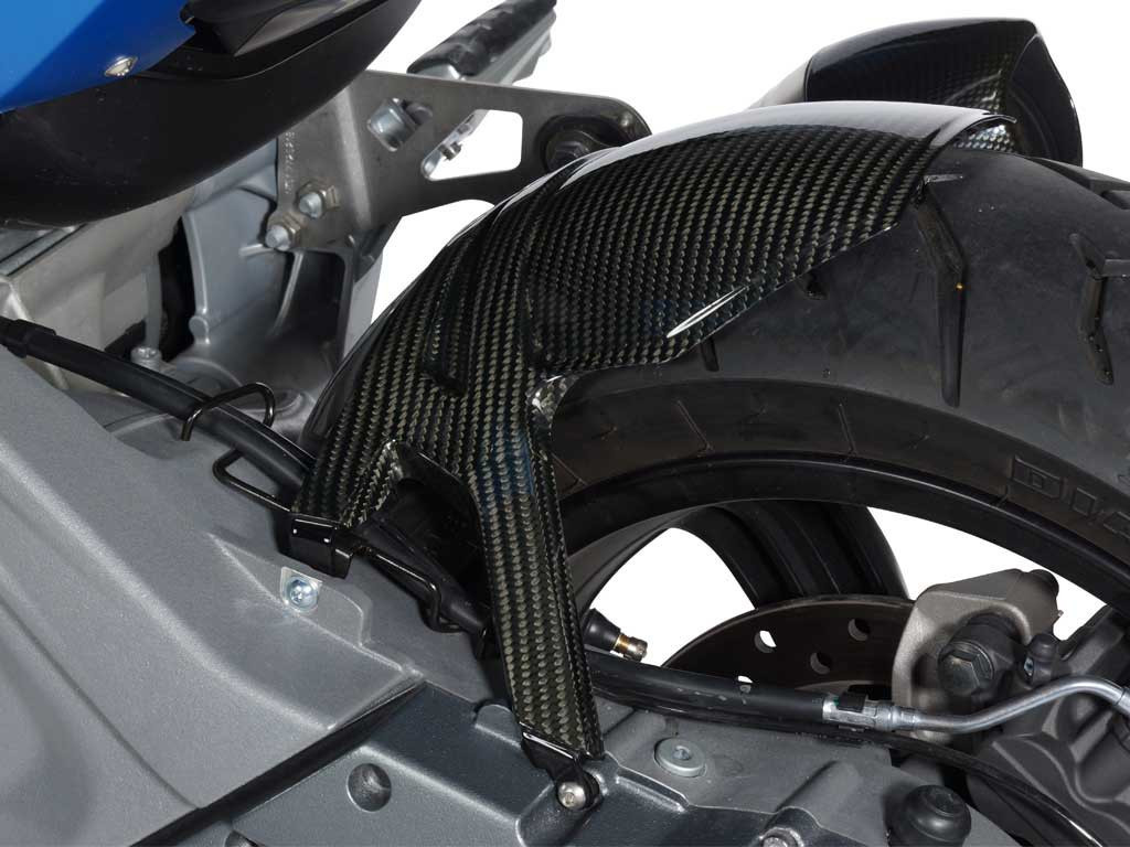 Letecký materiál ukazuje svoj plný potenciál s úsporou hmotnosti až 70% v porovnaní so sériovým dielom a svojou tuhosťou špecifickou pre hmotnosť. Forma vždy sleduje funkciu a je optimálne integrovaná do dizajnu motocykla. Zohľadňujú sa línie príslušného stroja, ako aj materiál a povrchová štruktúra susedných sériových komponentov. Tento karbónový komponent podčiarkuje high-tech nárok vášho BMW s jedinečným dojmom skutočného karbónu.