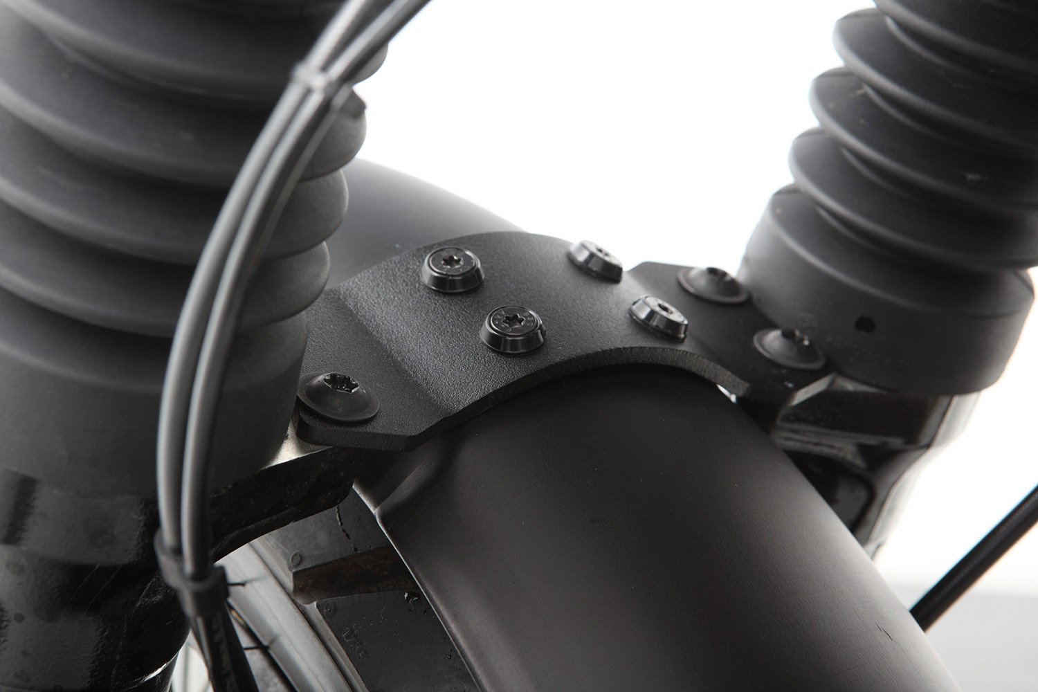 Tento krátky, krásny blatník predného kolesa vyrobený z brúseného hliníka je skutočným pútačom, dáva modelu R nineT Scrambler alebo G/S nový, nápadný a veľmi individuálny vzhľad prednej časti. Ušľachtilý blatník je pripevnený k originálnym úchytom pomocou stabilného držiaka z nehrdzavejúcej ocele. Ľahký, ale vysoko stabilný.