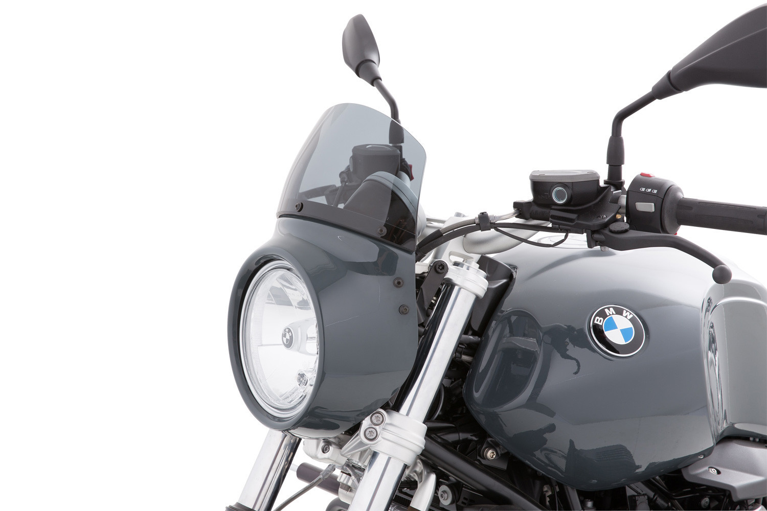 Táto minimalistická maska lampy predstavuje ideálny kompromis medzi kapotážou a pocitom skutočného roadsteru.Retro dizajn ideálne dopĺňa prednú časť R nineT Pure a zaisťuje aj citeľné zníženie tlaku vetra, najmä pri vysokých nepretržitých cestovných rýchlostiach.