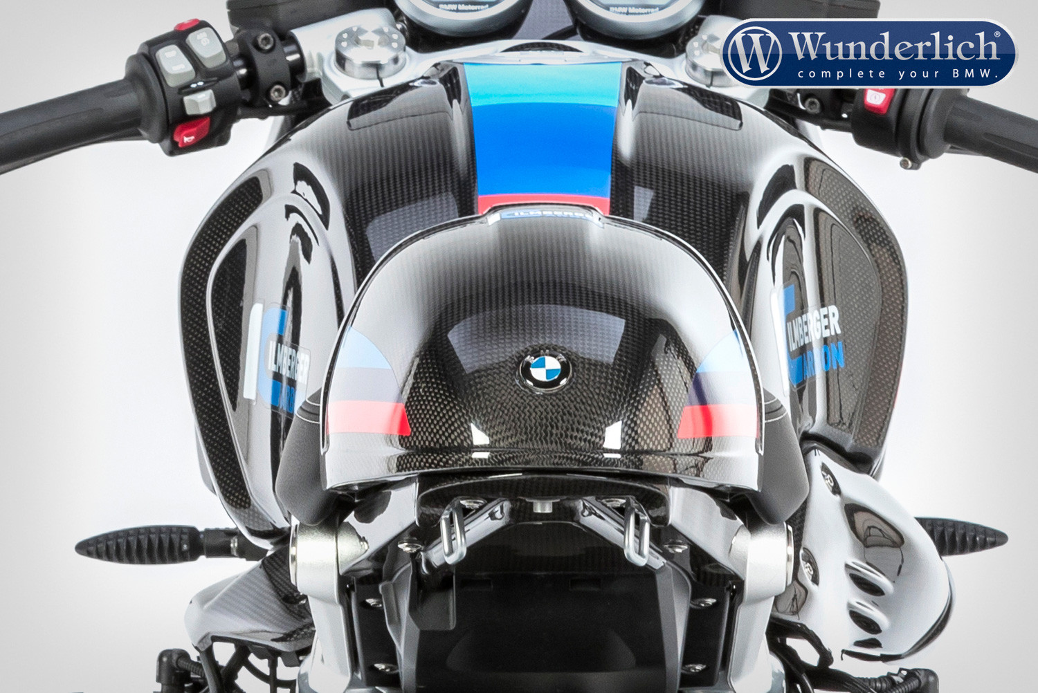 Poťah sedadla bez držiaka z karbónu pre BMW R nineT a R nineT Racer nahrádza pôvodný komponent pomocou originálnych upevňovacích bodov.