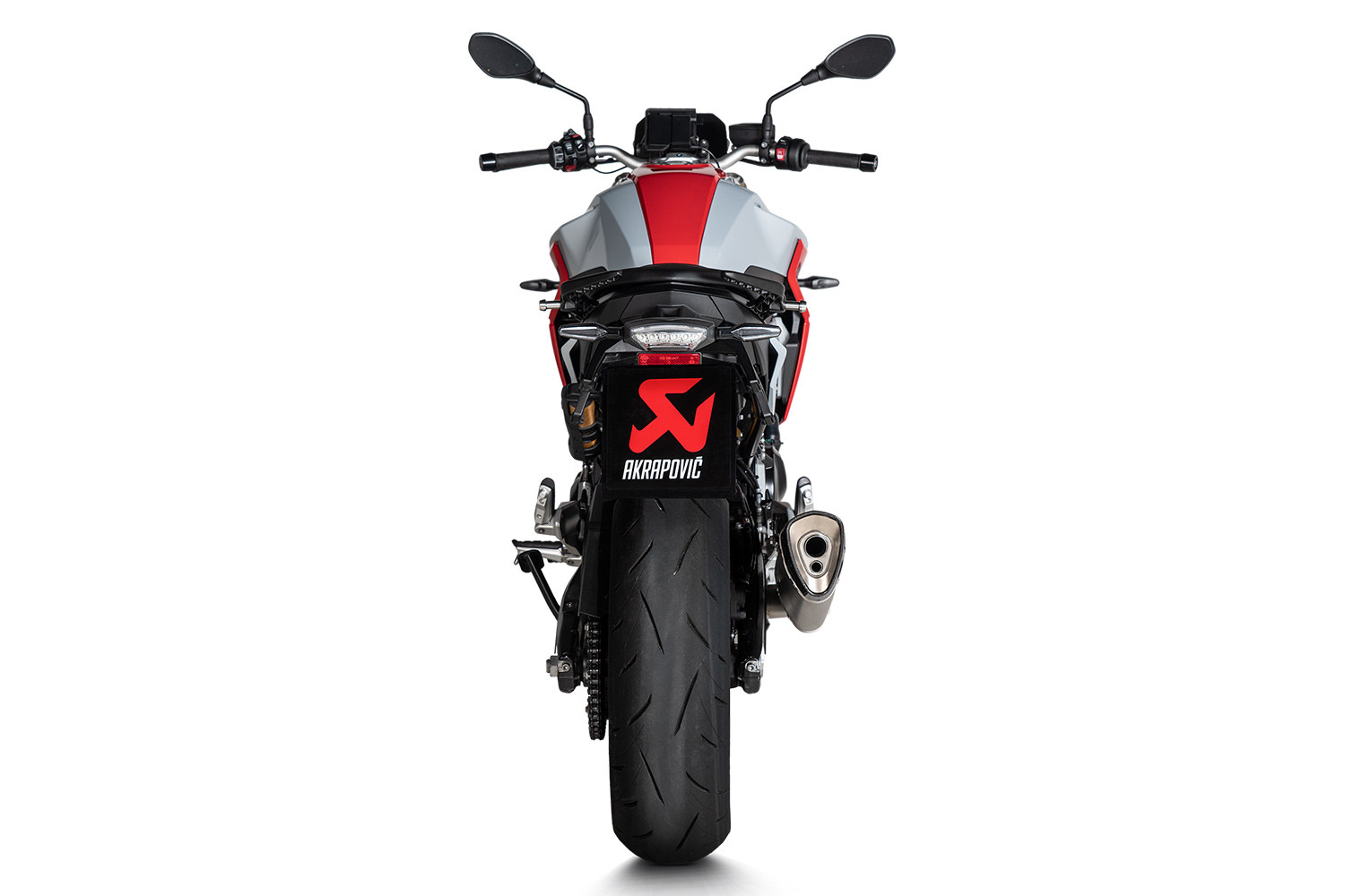 Systém skonštruovaný s ľahkým titánovým puzdrom tlmiča, spojovacou rúrkou a predtlmičom z nehrdzavejúcej ocele a ručne vyrobeným karbónovým koncovým uzáverom ponúka významnú úsporu hmotnosti o 21,6 percent v porovnaní so štandardným systémom. Vďaka svojmu inovatívnemu dizajnu je plne integrovaný do línií motocykla, je malý a kompaktný a zaisťuje silný vizuálny vzhľad. Jeho plný a živý zvuk je hlboký, športový rev, vďaka ktorému dvojvalcový motor pulzuje v harmonickom rytme. Perfektná odozva plynu ponúka pocit dobrého výkonu. Systém sa vyznačuje jednoduchou inštaláciou typu plug-and-play a je typovo schválený EC/ECE a spĺňa normu Euro5.