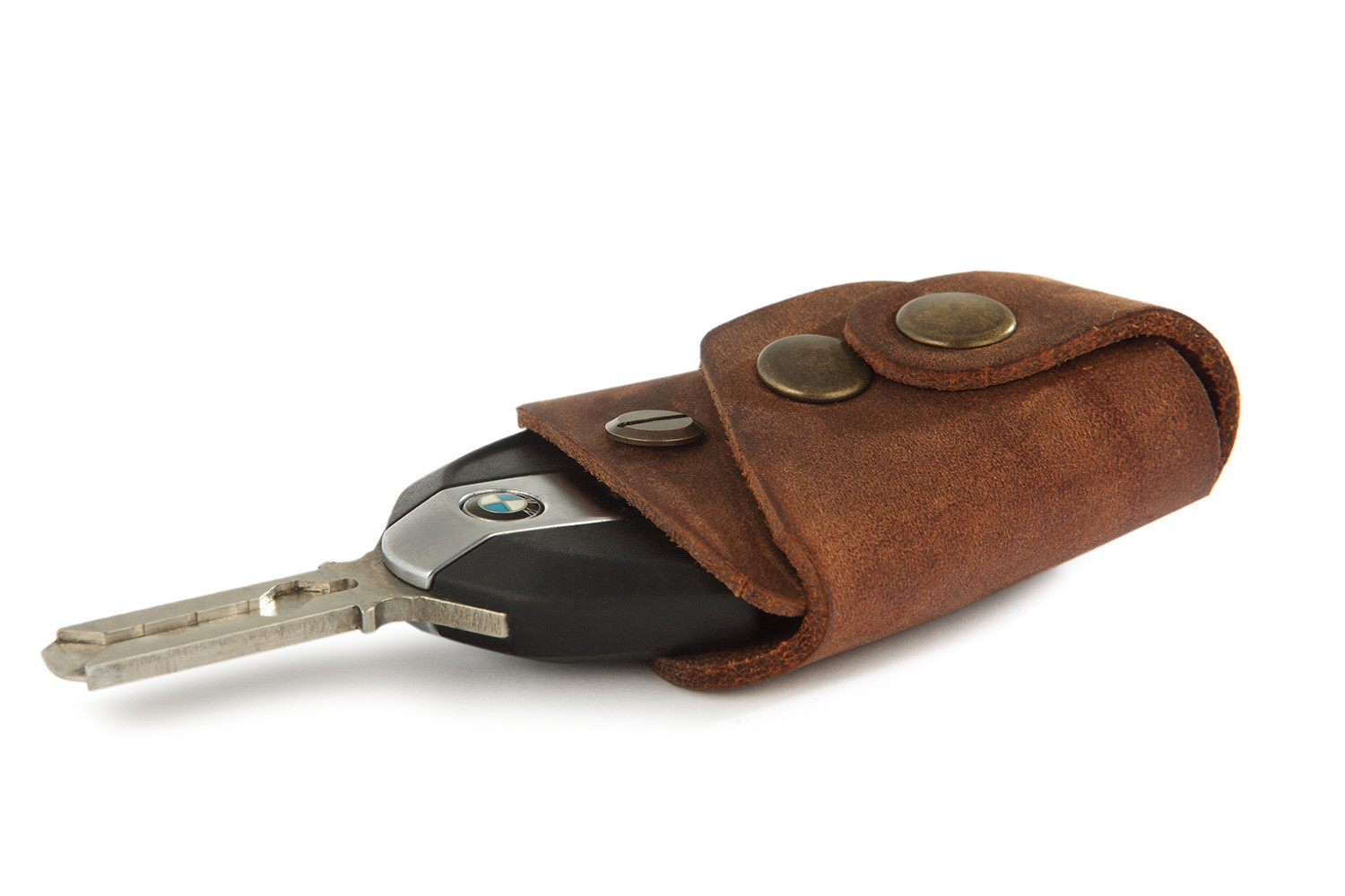 Univerzálne puzdro na kľúče vyrobené z kože vyčiňovanej rastlinnou výrobou. Kvalitné remeselné spracovanie - brašnárska práca. Poznámka: Priemer poistného kolíka: 3,9 mm Vhodné aj pre skladacie kľúče dvojventilových boxerov. funkciu Elegantný obal na kľúč od (motocyklového) šťastia Bezpečné, skrutkové uchytenie kľúča Chráni kľúče a podšívku vrecka nohavíc pred poškodením Uzavre kľúč vďaka integrovanému zaklapávaciemu tlačidlu   Koža s kvalitnou razbou loga Wunderlich Technické špecifikácie Hovädzia koža, rastlinne činená do hneda Kvalitná brašnárska práca Priemer čapu kľúča 3,9 mm   osobitosti Rozmarný. Funkčný dizajn Rozmarný. Malá séria. Vyrobené ručne. Vyrobené v Európe 5 ročná záruka