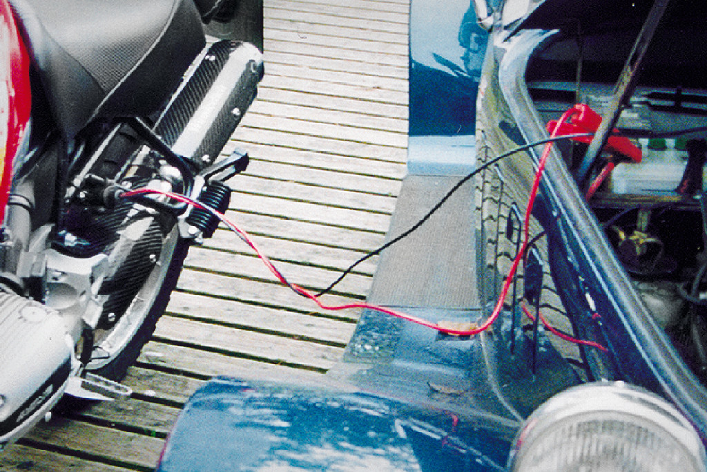 Zásuvka s hrubými káblami ku ktorej pripojíte štartovacie káble. Môžete tak nabíjať motocykel alebo štartovať.