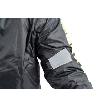 Ležérne strihaná, užitočná bunda do dažďa - nielen pre prípad núdze, ale pri mnohých príležitostiach, dokonca aj mimo motorky. Veľkorysý strih, aby sa bunda dala v prípade potreby nosiť aj cez oblek a ponúka dodatočnú ochranu pred vetrom a dažďom.