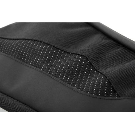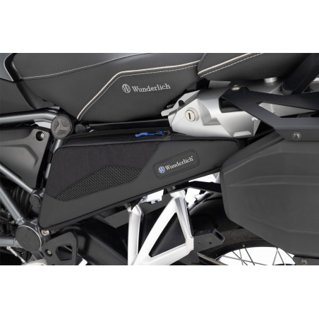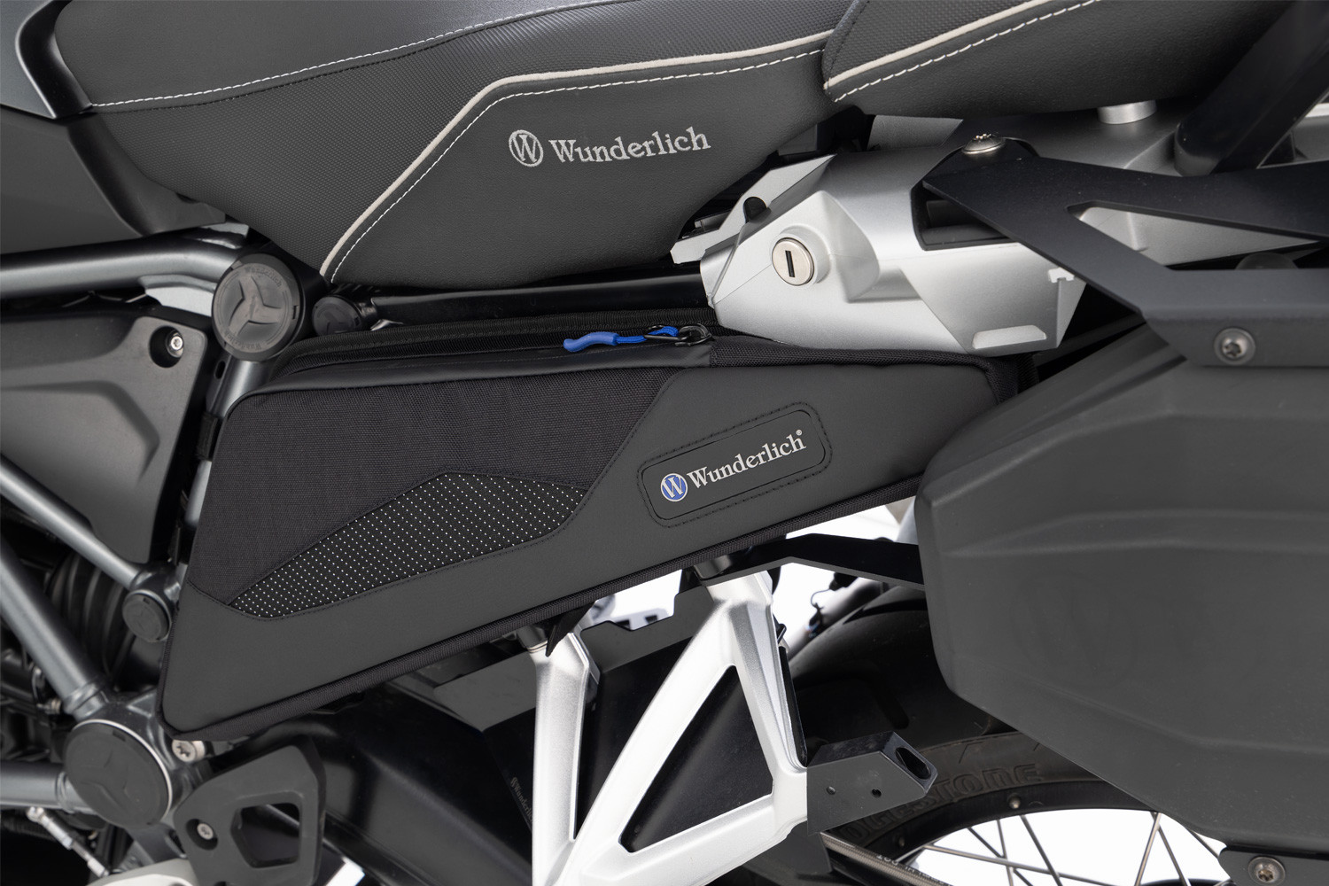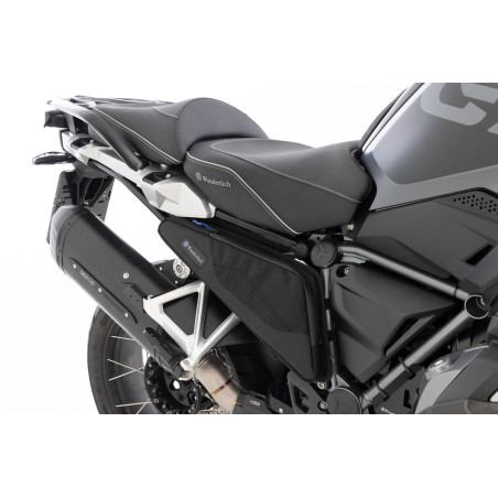 Rámové tašky v tejto súprave zapôsobia svojim efektívnym dizajnom, udržateľnými látkami a výrobnými procesmi, ako aj ďalej optimalizovanou funkčnosťou. Dve praktické vrecká vyrobené z dokonale prepracovaného materiálu CORDURA® TrueLock™ ponúkajú ďalší priestor pre všetko, čo treba mať na dosah, ako sú nástroje alebo obväzy. Zároveň zatvoríte otvor v zadnom ráme vpravo a vľavo a dotvoríte vzhľad svojho GS tak, že teraz pôsobí, akoby bol vyrobený z jedného kusu. Zabezpečuje tiež ochranu vodiča a spolujazdca pred striekajúcou vodou. Montáž v blízkosti ťažiska je obzvlášť výhodná pre neutrálne jazdné správanie. Najmä pri použití v teréne. Bez akéhokoľvek obmedzenia slobody pohybu vodiča a spolujazdca. S logom značky Wunderlich.