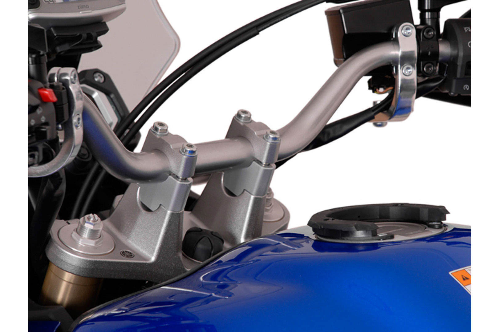 SW-MOTECH Sada tyčových stoupaček Univerzální Zvyšuje se o 30 mm Vhodné pro motocykly s řídítky 28 mm a vzdáleností otvorů 30 mm - 37 mm Optimalizuje polohu sezení CNC frézované, vyrobené z extrémně pevné hliníkové slitiny Stříbrný práškový lak Zahrnutý: Tyčová stoupačka Montážní materiál Montážní návod